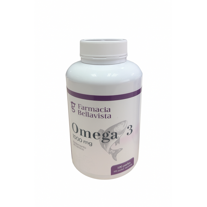 Complemento alimenticio de Omega 3 (1000 mg) de Farmacia Bellavista, ideal para apoyar la salud cardiovascular, cerebral y ocular. Contiene 100 perlas de alta calidad, perfectas para incorporar a tu rutina diaria de bienestar.