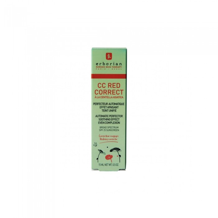 ERBORIAN. CC RED CORRECT 15ML. CREMA PERFECCIONADORA DE PIELES CON TENDENCIA A ROJECES, UNIFICA TONO QUEDANDO COLOR Y TEXTURA IDEAL. SE PUEDE APLICAR SOLO O COMO PRIMER ANTES DE TU MAQUILLAJE. CON CENTELLA ASIÁTICA Y SPF25.